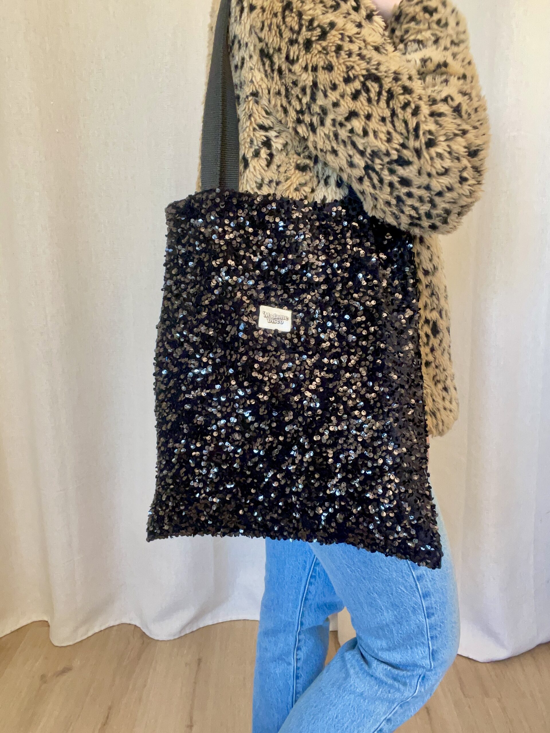Brillez de mille feux avec ce cabas à sequins noirs unique en son genre !